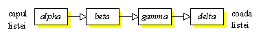 O lista este o colectie de elemente de informatie (noduri) aranjate intr-o anumita ordine. Lungimea unei liste este numarul de noduri din lista. Structura corespunzatoare de date trebuie sa ne permita sa determinam eficient care este primul/ultimul nod in structura si care este predecesorul/succesorul (daca exista) unui nod dat. Iata cum arata cea mai simpla lista, lista liniara: