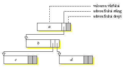 Figura 3.2 Reprezentarea prin adrese a unui arbore binar. |
