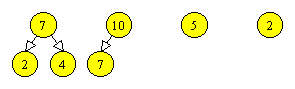 Inaltimea arborilor poate fi memorata intr-un tablou H[1 .. N], astfel incat H[i] sa contina inaltimea varfului i in arborele sau curent. In particular, daca a este eticheta unei multimi, H[a] va contine inaltimea arborelui corespunzator. Initial, H[i] = 0 pentru 1 £ i £ N. Algoritmul find2 ramane valabil, dar vom modifica algoritmul de fuzionare.
