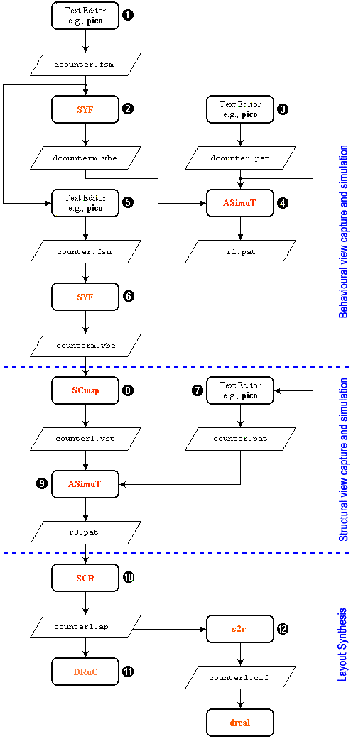 A counterl.cif file is created which can be viewed with dreal.