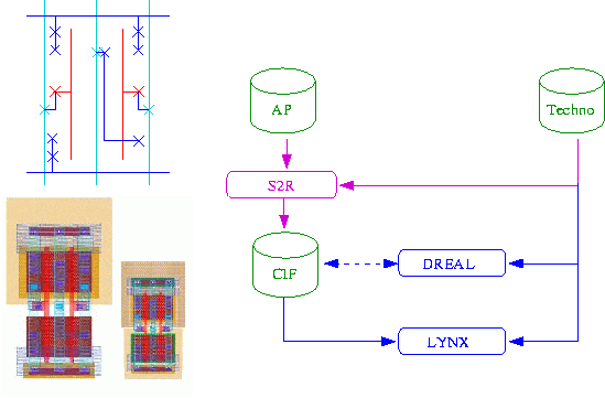 a symbolic layout (lambda) to a real equivalent layout (micron).
